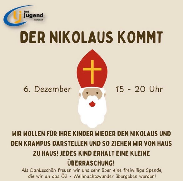 Auch heuer zieht der Nikolaus gemeinsam mit dem Krampus wieder von Haus zu Haus und sorgt für leuchtende Kinderaugen und festliche Stimmung in Michelbach! ✨